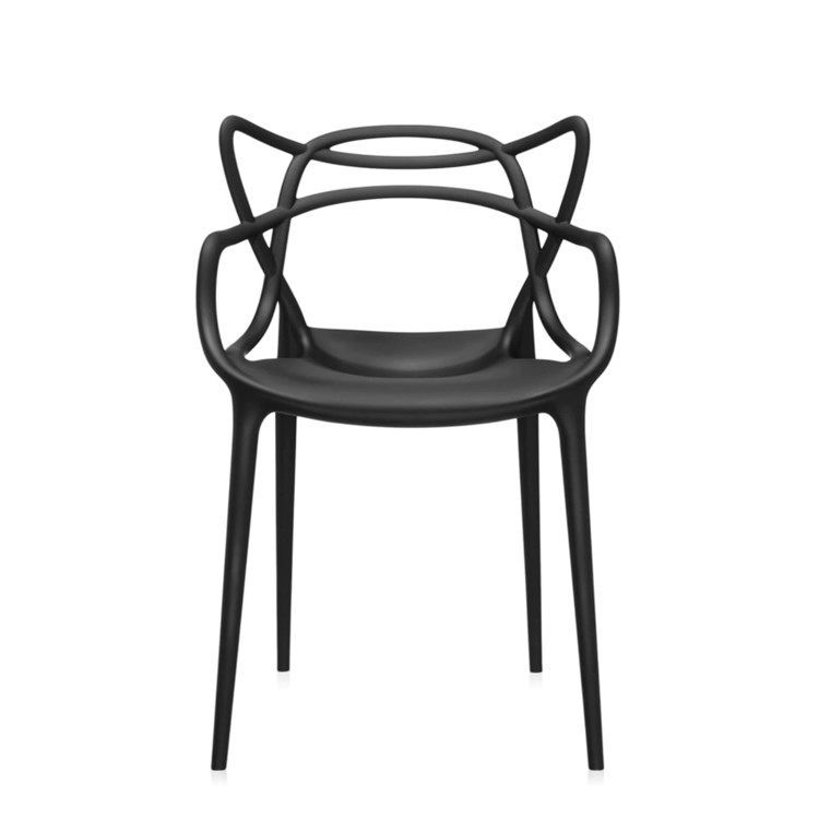 Der Masters Chair von Kartell wurde 2010 von Philippe Starck entworfen und verfügt über skulpturale Formen. Der Stuhl ist als Hommage an den 7er-Stuhl, den Eames Eiffel-Stuhl und den Tulpenstuhl konzipiert, wobei die Formen aller drei Stühle im Design sichtbar sind.