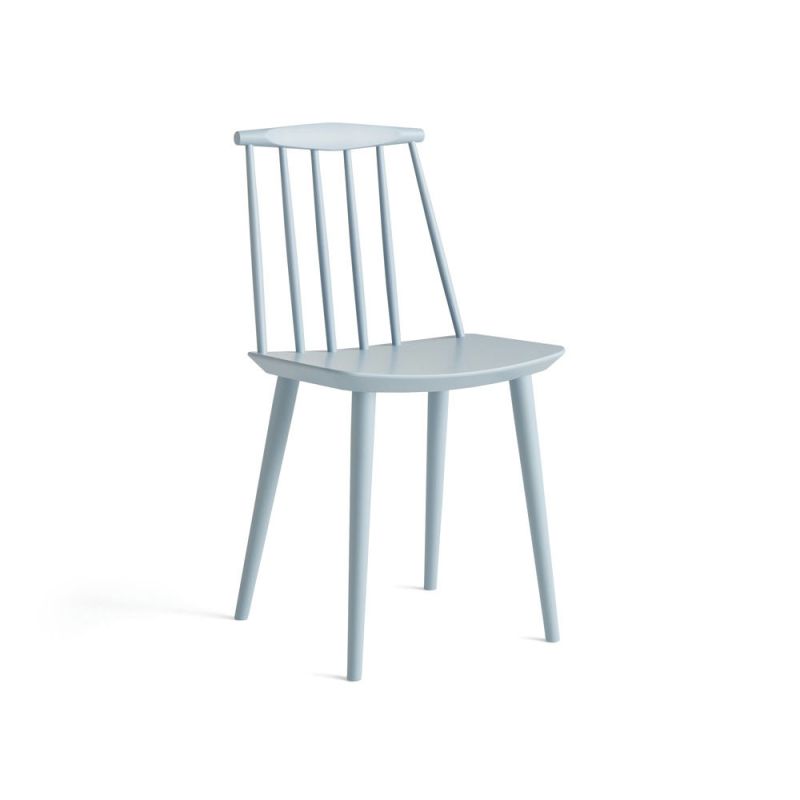 Der Windsor-inspirierte Esszimmerstuhl J77 von Folke Pålsson verfügt über eine breite Sitzfläche und eine geschwungene Spindellehne für optimalen Komfort, während die leicht konischen Beine für zusätzliche Stabilität sorgen. Die neu aufgelegte Version von HAY besteht aus massiver Eiche oder Buche und ist in verschiedenen geölten, natürlichen oder gebeizten Ausführungen erhältlich.
