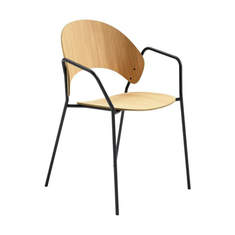 Dosina-Sessel. Die DOSINA-Serie kombiniert massive Eiche und Stahl in einem stromlinienförmigen Design, das Funktion, Komfort und zeitlose Ästhetik in Einklang bringt. Inspiriert von der Dosina-Muschel hat der Stuhl eine charakteristische fächerförmige Rückenlehne, die großzügigen Halt und hohen Sitzkomfort bietet. Die schlanken, symmetrischen Beine und klaren Linien betonen den minimalistischen Ausdruck des Stuhls. Der Stuhl ist leicht, stapelbar und aus allen Blickwinkeln erkennbar, ideal als Esszimmerstuhl zu Hause, Bürostuhl oder in öffentlichen Räumen wie Cafés und Restaurants. Durch die Möglichkeit der Reihenverbindung eignet es sich auch für Veranstaltungen, bei denen ein flexibler Aufbau und eine einfache Lagerung erforderlich sind.