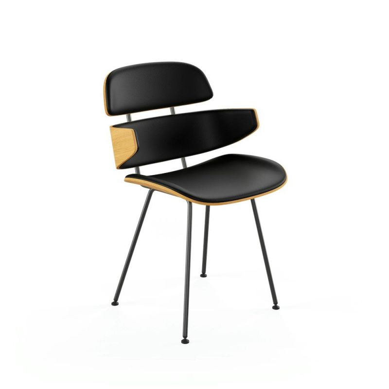 • Materialien: Eiche, schwarz pulverbeschichteter Stahl, Leder