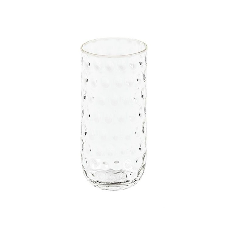 Der Danish Summer Tumbler von Kodanska mit einem Muster aus großen Tropfen kann sowohl für kalte als auch für warme Getränke sowie zur Aufbewahrung von Schreibutensilien oder kleinen Gegenständen verwendet werden. Jedes Glas ist mundgeblasen und hat eine abgerundete Holzform, wodurch sichergestellt wird, dass alle Gläser die gleiche Größe haben, obwohl jedes seine eigene einzigartige Farbe und sein eigenes Muster hat.
