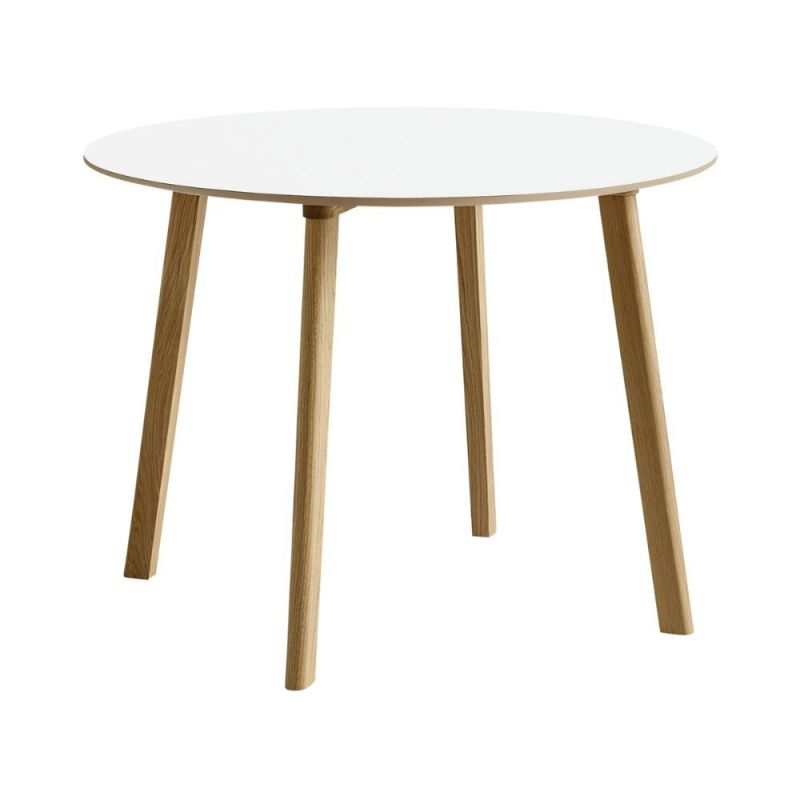 CPH Deux 220 Tisch. Runder Tisch mit schlichtem und stilvollem Design von den Brüdern Bouroullec. Perfekt für Cafés, Konferenzräume und zu Hause. Erhältlich in mehreren Größen mit massivem Holzrahmen und langlebiger Laminat-Tischplatte in verschiedenen Farben.