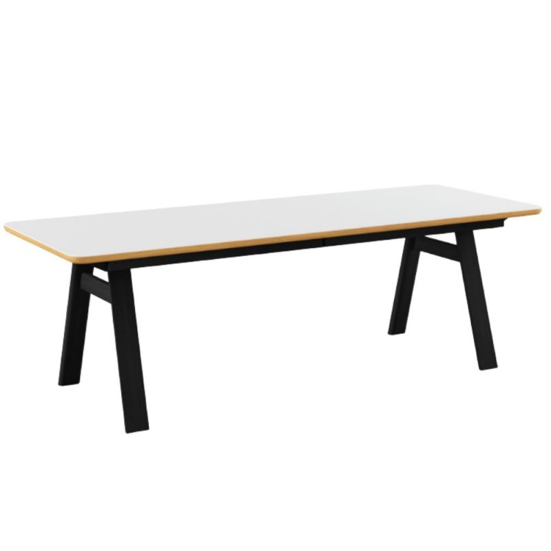 Chess ist mit einem Butterfly-Auszug in der Mitte gestaltet, der eine leichte und elegante Verlängerung des Tisches ermöglicht und den Tisch zu einem naheliegenden Treffpunkt macht. Der Tisch ist mit einer Oberfläche aus Corian gestaltet, die sowohl praktisch ist als auch einen schönen Kontrast zur massiven Holzkante bildet.