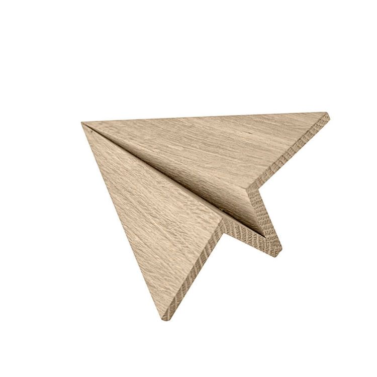 Maverick, das Papierflugzeug aus Holz. Eine nostalgische Erinnerung an die Papierflieger der Boyhood, hier interpretiert in massiver Eiche. Leichtes und luftiges Design, startklar und mit einer Nylonschnur kann Maverick sogar wirklich fliegen.