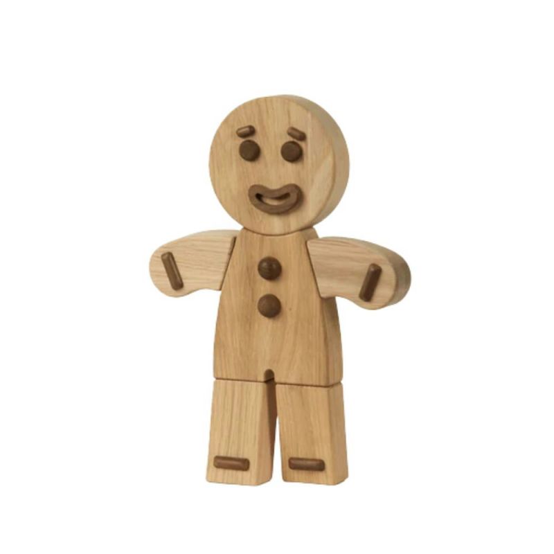 Der klassische Lebkuchenmann jetzt aus massivem Eichenholz in zwei Farben. Zusammengehalten mit Magneten, sodass der Ausdruck variiert werden kann. Ein verspieltes Designobjekt, das Nostalgie mit modernem Handwerk verbindet.
