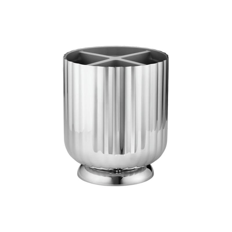 Dieses Design ist perfekt für die Aufbewahrung von Besteck und macht das alltägliche Küchenzubehör schöner. Der Besteckhalter ist aus Edelstahl gefertigt und trägt das beliebte Design der Bernadotte-Kollektion mit dem gerippten Signaturmuster. Der Besteckhalter kann bis zu sechs Bestecksets aufnehmen.