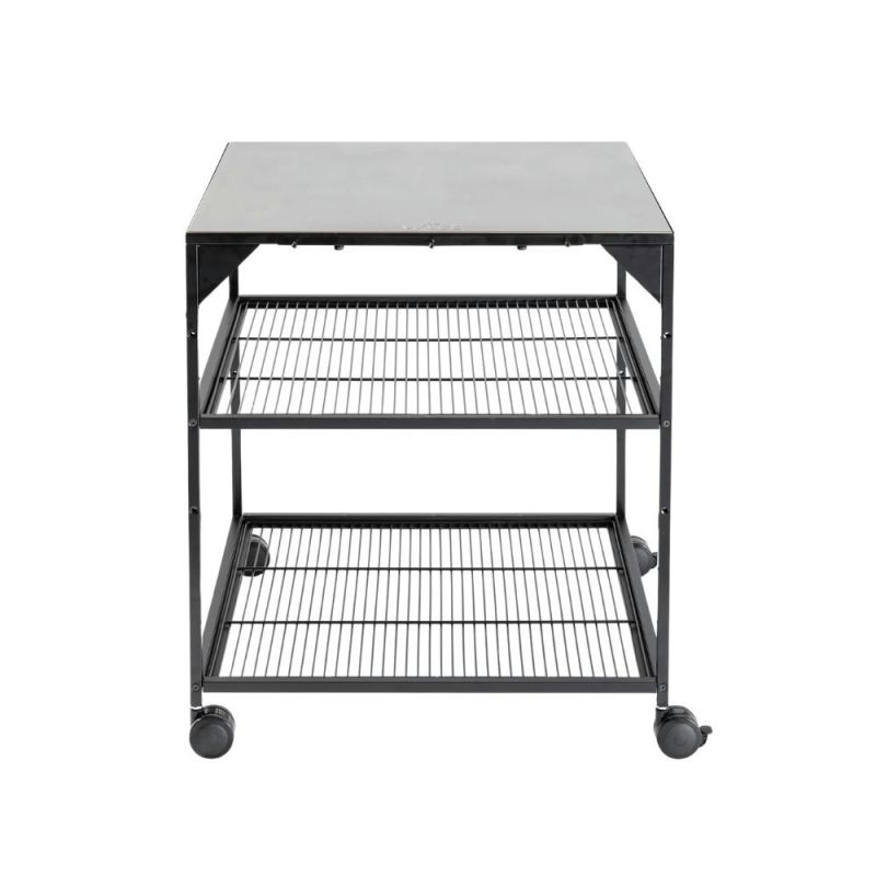 Witt Pizza Servierwagen ist eine fantastische Arbeitsstation für Ihren Pizzaofen und perfekt zur Aufbewahrung Ihres Zubehörs. Schwarzer pulverbeschichteter Stahltisch mit 4 arretierbaren Rädern. Edelstahl-Arbeitsplatte und 1 Stahlrost zur Aufbewahrung von Zubehör sind im Lieferumfang enthalten. Hinweis: Der gezeigte Tisch ist ein Prototyp, das physische Produkt kann vom Bild abweichen.