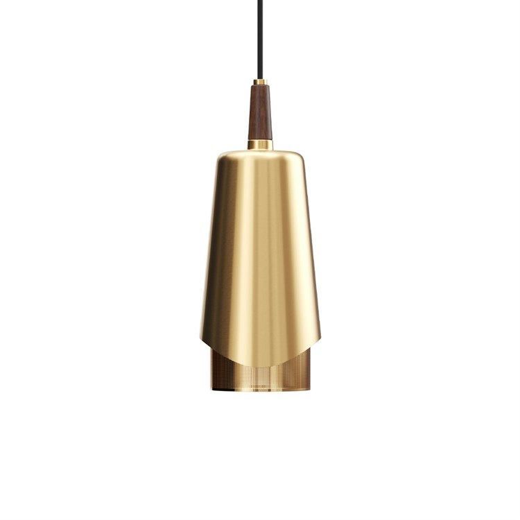 Die Umanoff-Pendelleuchte von Audo wurde von Arthur Umanoff entworfen, der schöne Materialien in einer eleganten Formation kombiniert hat. Der Anhänger besteht aus massivem Messing mit Walnussdetails, die einen starken Kontrast zur femininen und glänzenden Oberfläche bilden.