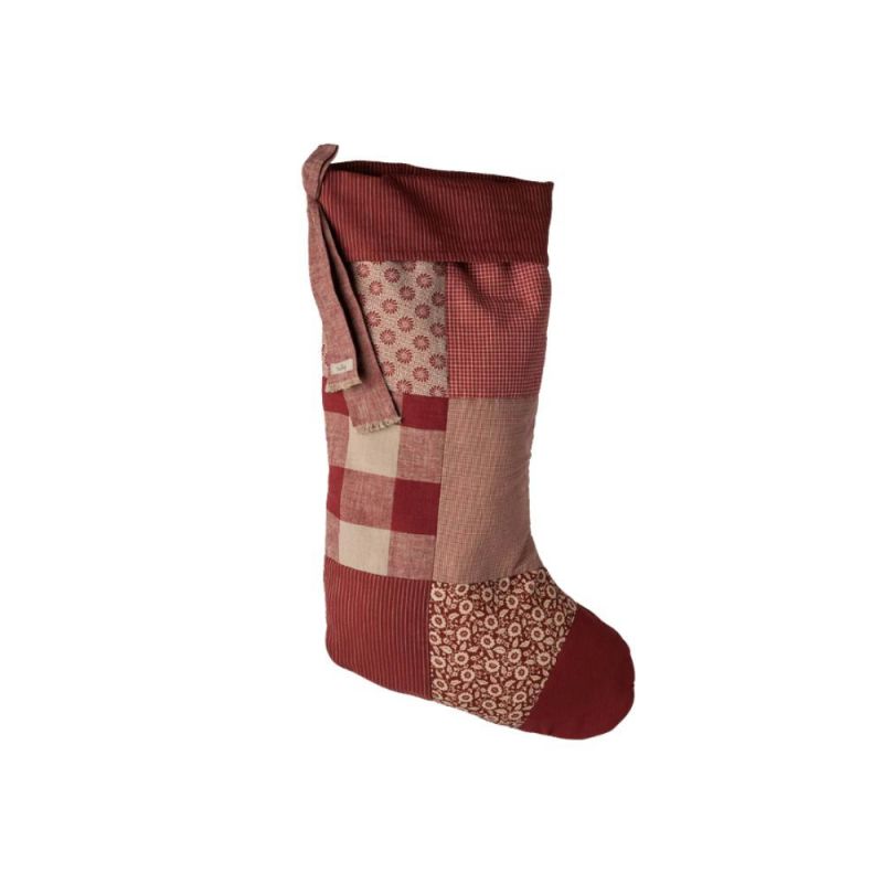 Hängen Sie diesen schönen Weihnachtsstrumpf an einen besonderen Platz in Ihrem Zuhause und schaffen Sie Magie im Dezember. Der Strumpf ist aus einem feinen Mosaik aus verschiedenen Stoffen in klassischen Weihnachtsfarben gefertigt und perfekt für kleine Überraschungen vom Weihnachtsmann, die Gemütlichkeit und Weihnachtsstimmung den ganzen Monat verbreiten.