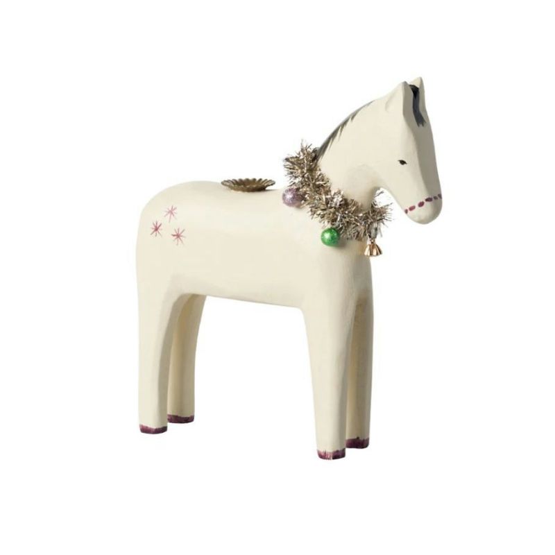 Schaffen Sie eine gemütliche Weihnachtsstimmung in Ihrem Zuhause mit diesem Holzpferd-Kerzenhalter. Ein alter Maileg Klassiker in einer aktualisierten Version. Kerzen Ø2,2 cm passen perfekt zu diesem Pferd. Hinweis: Lassen Sie Kerzen niemals unbeaufsichtigt.