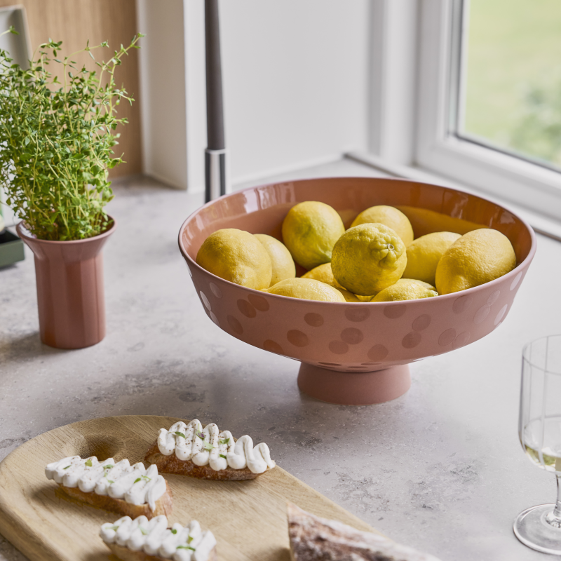 Luonto Bowl ist eine handgefertigte Schale, voller Wärme und Persönlichkeit. Gefertigt aus natürlichem Steinzeug mit einer gepunkteten Oberfläche, die einen vintage-inspirierten Look verleiht.