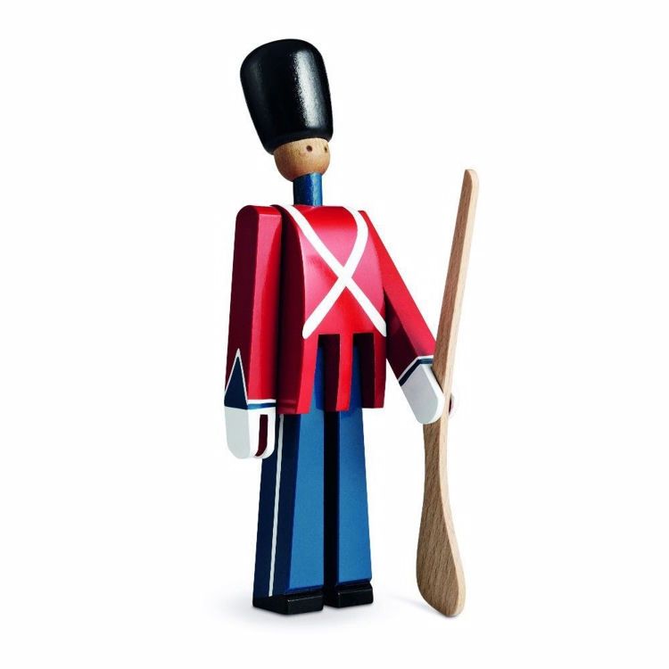 Kay Bojesen, Private mit Gewehr, ist einer von drei Mitgliedern einer kleinen Familie. Die restlichen Familienmitglieder sind der Trommler und der Standartenträger - alle 1942 von Kay Bojesen entworfen. Die Holzsoldaten sind Teil einer größeren Figurensammlung, für die Kay Bojesen heute vor allem bekannt ist. Kaj Bojesen-Figuren sind ein Klassiker, der über Generationen weitergegeben wurde und noch immer eine naheliegende Geschenkidee für Anlässe wie Taufen, Hochzeiten und Konfirmationen ist.