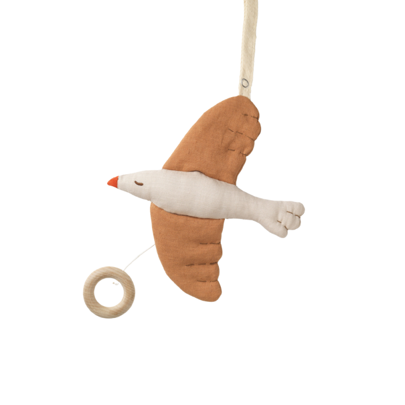 Feiner handgestickter Vogel. Sorgt für eine gemütliche Optik am Bett oder über dem Wickeltisch. Der Vogel ist aus schönem Naturleinen in wunderschönen Farben für einen schönen und ruhigen Vintage-Look.