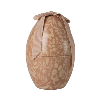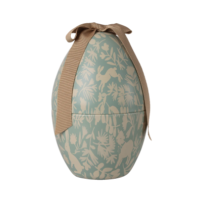 Metall-Osterei mit einem schönen Print. Schau dir den Print noch einmal genauer an und sieh, ob du die verschiedenen Tiere entdecken kannst. Das Ei kommt mit einer großen, weichen Schleife oben, die dem Ei einen exklusiven Look verleiht.