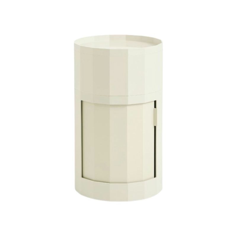 Facet Cabinet ist eine vielseitige Aufbewahrungslösung, die sich leicht bewegen lässt. Der Name leitet sich von den facettierten Oberflächen ab, die dem minimalistischen Design eine edle Note verleihen. Der Schrank verfügt über eine verstellbare, integrierte Tür und Räder für zusätzliche Funktionalität.