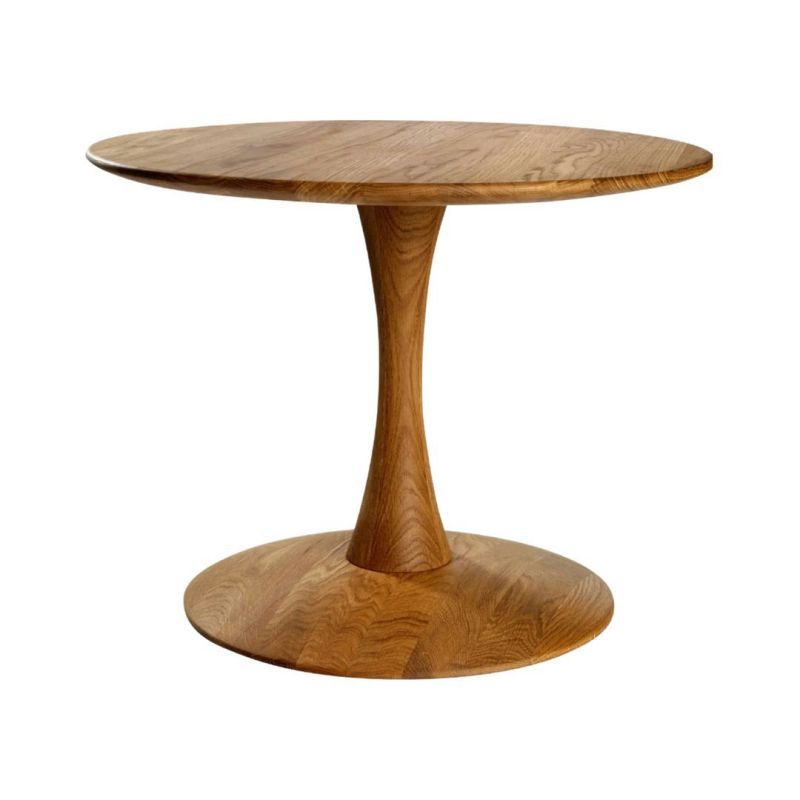 Der Esstisch ND109 ist Teil der legendären Trisse-Serie, bei der alle Möbel von der Form von Flaschenzügen in verschiedenen Größen inspiriert sind. Mit seiner runden und schlichten Silhouette hat der ND109 den zweitgrößten Durchmesser unter den Trisse-Esstischen und schafft einen einladenden Rahmen für gemütliche Zusammenkünfte. Die Serie wurde 1962 von Nanna Ditzel für Kolds Savværk in Kerteminde entworfen und spiegelt ihre Vision von Funktionalität und schlichter Eleganz wider. ND109 wurde von erfahrenen Tischlern handgefertigt und ist ein schönes Beispiel für Ditzels organisches Design und ihre tiefen Wurzeln im dänischen Möbelhandwerk.