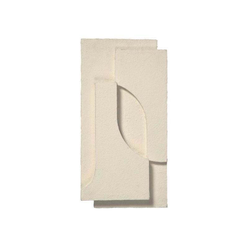 Serif Relief ist ein handgefertigtes Wandkunstwerk, bei dem Form und Materialstruktur aufeinandertreffen. Es besteht aus recyceltem Katran-Baumwollzellstoff, einem zu 100 % biologisch abbaubaren Material aus recyceltem Baumwollgewebe. Kleine Abweichungen in Form und Farbe machen jedes Werk zu einem Unikat.