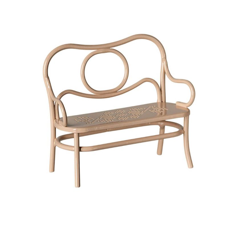 Café-Möbel, in die Mäuse in Mama- und Papa-Größe passen. Das Set besteht aus einer Bank und einem Tisch und ist der perfekte Ort, um eine Tasse Nachmittagstee zu genießen.