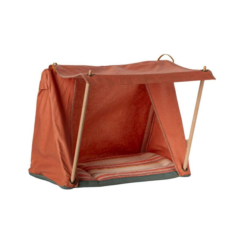 Nehmen Sie Ihre Maus mit zum Schlafen in das faltbare Zelt. Holzheringe können die Zelttür offen halten und so Schutz vor Regen bieten. Der Außenstoff ist für ein authentischeres Aussehen mit einer Beschichtung versehen. Vergessen Sie nicht, dass die Mäuse ihre Schlafsäcke mitbringen müssen.