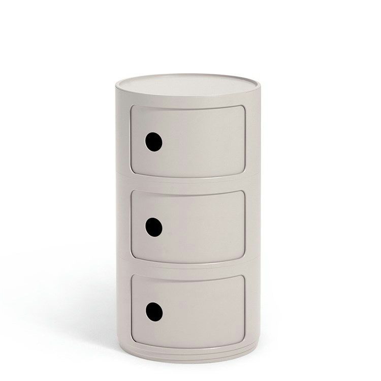 Das Componibili-Aufbewahrungssystem von Kartell wurde 1969 von Anna Carstelli Ferrier entworfen, wurde aber in einer nachhaltigeren Version als Componibili Bio in vier wunderschönen Farben neu aufgelegt. Componibili Bio wird aus recycelbarem Material hergestellt, was Teil von Kartells Fokus auf Umwelt und Nachhaltigkeit ist.