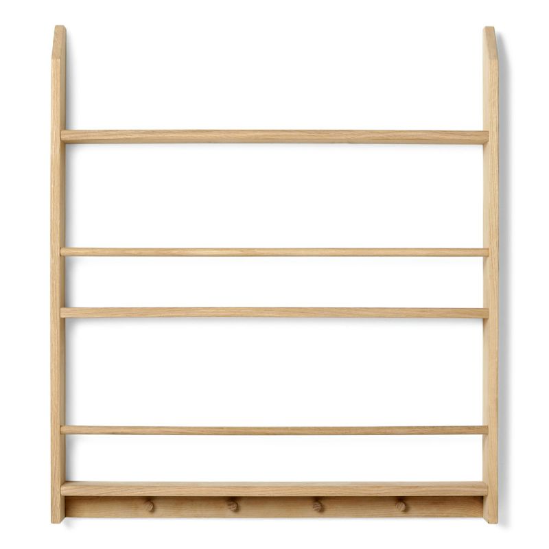Das Eli Shelf ist ein funktionales Regal aus massiver geölter Eiche, das ohne sichtbare Schrauben an der Wand befestigt wird. Das schlichte und schöne Design des Regals kann in jedem Raum des Hauses verwendet werden. Spielzeug, Kochbücher oder Krimskrams lassen sich elegant verstauen. Dieses Regal verfügt über eine kleine, schöne und praktische Garderobenleiste, die eine zusätzliche Möglichkeit zum Aufhängen Ihrer Sachen bietet.