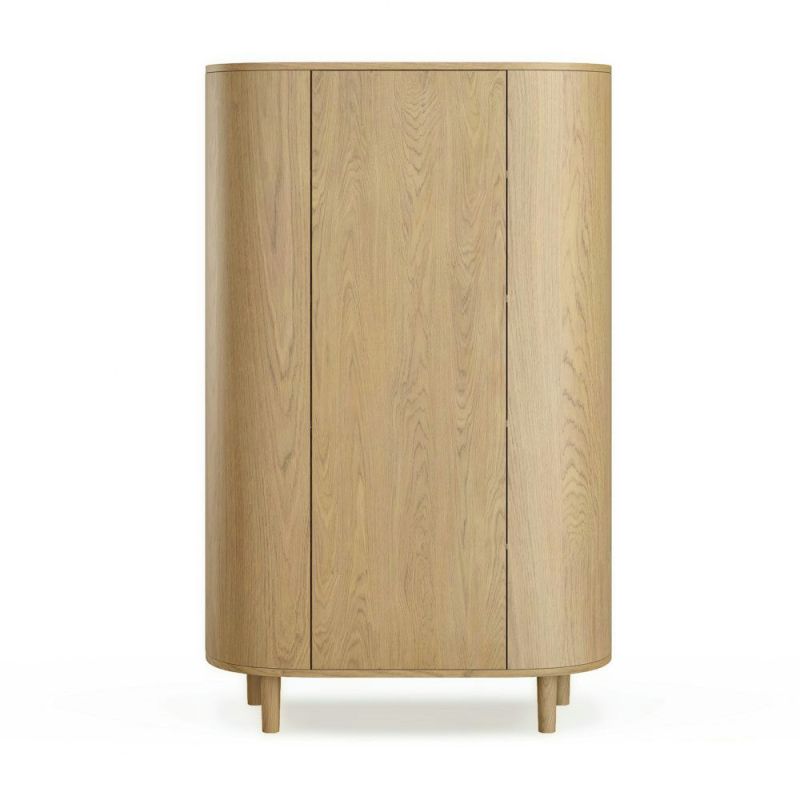 Eleganter Kleiderschrank mit ovaler Formensprache und durchdachter Funktionalität, perfekt für das Kinder- oder Schlafzimmer. Der Schrank bietet 3 Sektionen mit insgesamt 12 Regalen sowie eine praktische Kleiderstange, sodass Sie Kleidung und Accessoires einfach organisieren können. Die Touch-Öffnung verleiht einen stilvollen und modernen Ausdruck. KAS Kopenhagens charakteristisches Design mit konischen Beinen und unsichtbaren Schrauben sorgt für einen sauberen, minimalistischen Look.