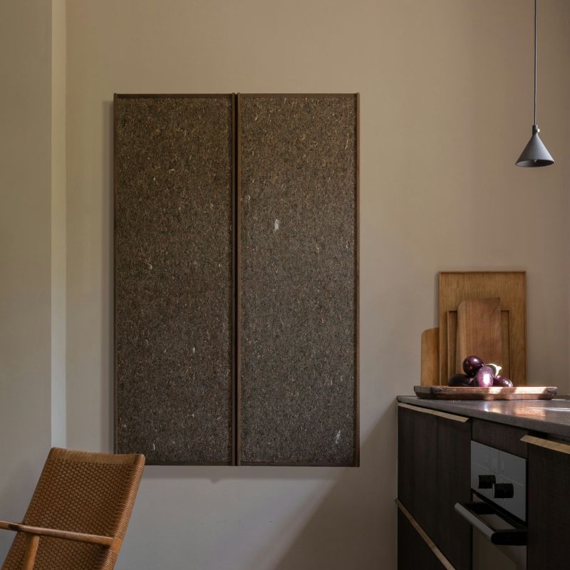 Søuld Holzrahmen Um unterschiedlichen Anforderungen an die Inneneinrichtung gerecht zu werden, bietet Søuld Akustikmatten mit Holzrahmen oder Holzverbindungen an. Die gerahmten Akustikmatten von Søuld werden in maßgefertigte Rahmen aus Naturholz mit abgeschrägten Kanten eingesetzt, was dem Seegrasmaterial zusätzliche Handwerkskunst und Taktilität verleiht. Die gerahmten Akustikmatten schaffen eine moderne Architekturlandschaft, wenn sie zusammen an Wänden oder Decken installiert werden. Bei der Verlegung in einer Reihe bilden die Matten ein Muster aus klaren, linearen Linien, die durch die Fugen hervorgehoben werden.
