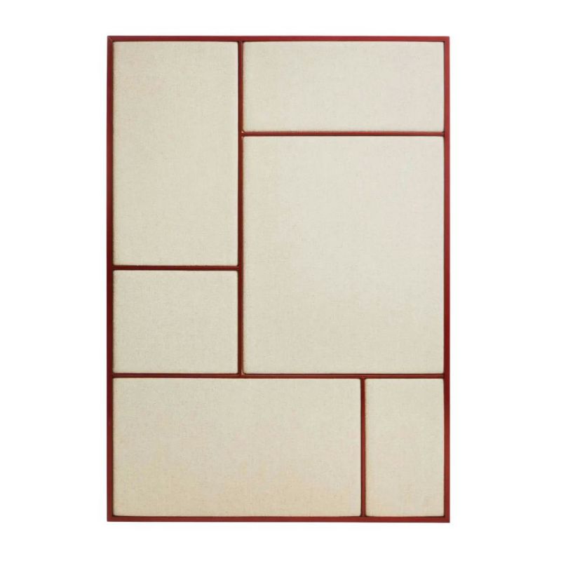 NEUE PIN-Anschlagtafel groß, baskisches Rot. NOUVEAU PIN ist ein stilvolles und vielseitiges Schwarzes Brett, ideal für alles von Fotos und Konzertkarten bis hin zu Moodboards und Notizen. Das Design ist von moderner Architektur und dem Jugendstil inspiriert und verfügt über ein rechteckiges Gittermuster und ein präzises Kantenprofil. Das Brett ist in drei Größen erhältlich, alle mit einer gemeinsamen Skala auf einer Seite, sodass sich mehrere Bretter leicht zu einem persönlichen Muster kombinieren lassen, das sich perfekt für Zuhause und das Büro eignet. Es verfügt über eine dezente Griffkante rundherum und wird mit versteckten Montagehalterungen geliefert. Zudem wirkt die Platte schallabsorbierend, was zu einer ruhigen Atmosphäre beiträgt.