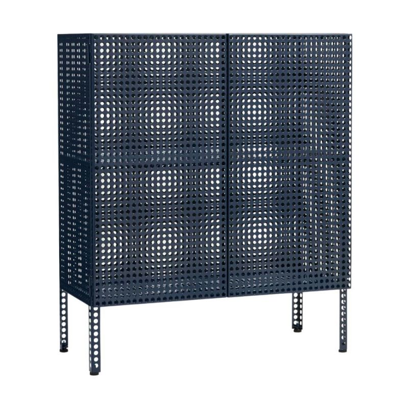 Perforated Cabinet ist von Muller Van Severen gestaltet und zeichnet sich durch ein markantes Zusammenspiel von Farbe, Form und Funktion aus. Die semitransparenten Löcher verbergen den Inhalt diskret und schaffen gleichzeitig Überblick. Die Schränke sind als wandmontierte oder freistehende Varianten mit Magnetverschluss erhältlich und vereinen praktischen Stauraum mit einem starken visuellen Ausdruck. Hergestellt aus pulverbeschichtetem Stahl und in mehreren Größen und Farben erhältlich - ideal für sowohl private als auch öffentliche Räume.