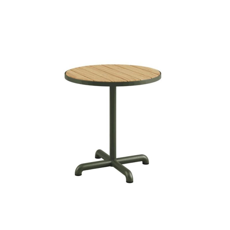 Der Kirra Café Table ist ein minimalistischer Cafétisch für den Außenbereich aus pulverbeschichtetem Aluminium und Teakholz. Das leichte, rostfreie Aluminium sorgt für lange Haltbarkeit, während der warme Glanz und die natürliche Patina des Teakholzes mit der Zeit Charakter und Charme verleihen. Perfekt für kleinere Außenbereiche wie den Balkon, die Terrasse oder eine sonnige Ecke im Garten, wo Kaffee genossen und Gespräche geführt werden können.