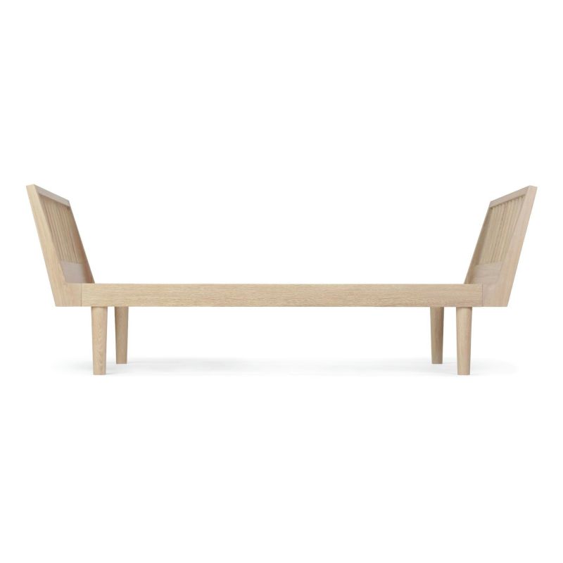Dieses innovative und zeitlose Design besteht aus massiver Eiche, die einen wunderschönen nordischen Look verleiht und von einer Qualität ist, die eine lange und nachhaltige Lebensdauer gewährleistet. Die Kopfteile sind ergonomisch geformt, sodass Sie beim Lesen eines Buches oder Surfen auf Ihrem Tablet bequem sitzen und dem Bett gleichzeitig die Illusion eines Sofas verleihen. Die Endplatten können entfernt und die Enden mit zusätzlichen Teilen verschlossen werden, wodurch das Möbel in ein Tagesbett verwandelt wird.