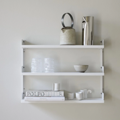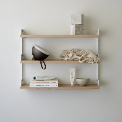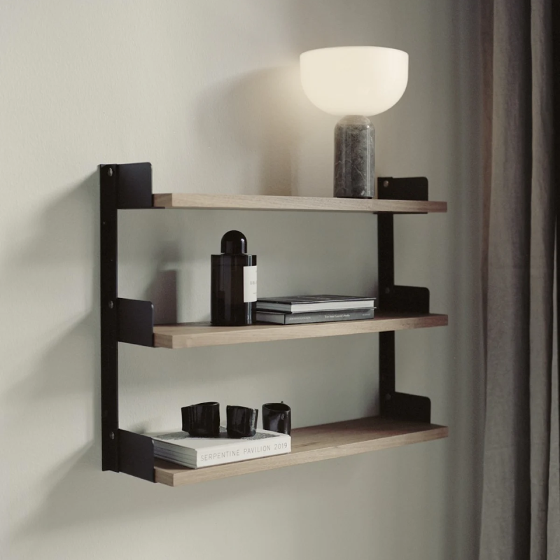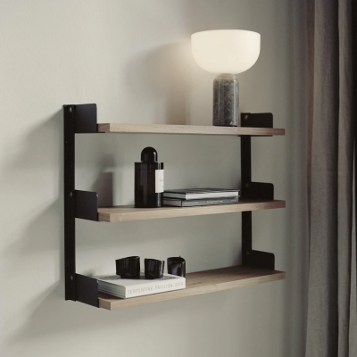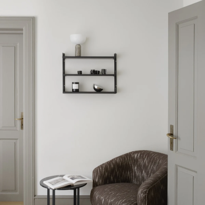 Das New Works Regalsystem ist ein schlichtes und flexibles Wandregal mit einem zeitlosen, zurückhaltenden Ausdruck. Das Design ist bis ins kleinste Detail durchdacht von den kantigen Wandschienen bis hin zu den integrierten Buchstützen und flachen Fingerschrauben aus Edelstahl.