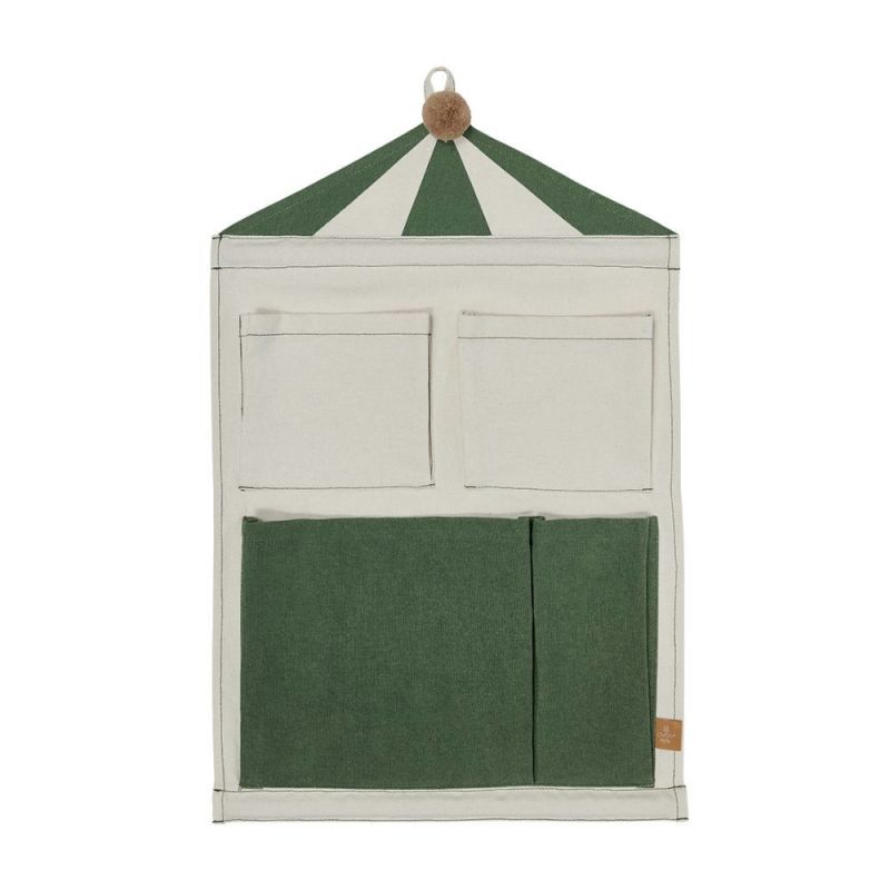 Circus Wall Storage kombiniert Spiel und Funktion im Kinderzimmer. Mit seiner farbenfrohen Zirkuszelt-Form verfügt es über mehrere genähte Taschen in verschiedenen Größen ideal zur Aufbewahrung von Büchern, Spielzeug oder kreativen Materialien.