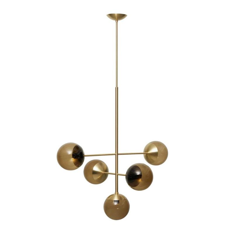 Lord Diva, skulpturaler Anhänger mit raffinierter Balance. Lord Diva besteht aus fünf Glaskuppeln, die in einem scheinbar zufälligen, aber sorgfältig ausbalancierten Kreuzmuster auf massiven Metallstangen montiert sind. Bei genauerem Hinsehen offenbart das Design eine raffinierte Komposition mit viel Liebe zum Detail und handwerklichem Können. Durch die verstellbare Höhe lässt sich die Lampe leicht an verschiedene Räume und Stimmungen anpassen und ist somit eine unverwechselbare und flexible Ergänzung für jedes Interieur.