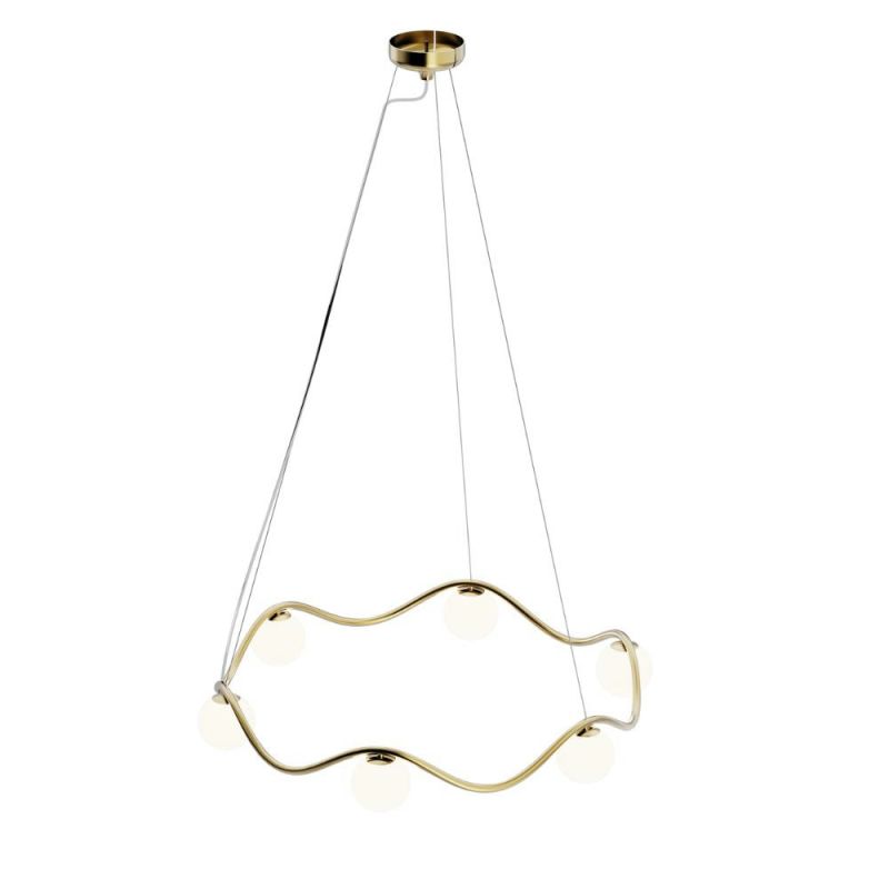 Wave-Pendelleuchte - Skulpturale Eleganz in Messing. Wave ist ein moderner Kronleuchter mit skulpturalem Ausdruck, der für zeitgenössische Räume mit Sinn für Ästhetik entworfen wurde. Die wellenförmige Form aus massivem Messing hängt elegant an dünnen Drähten und erzeugt ein leichtes, schwebendes Gefühl im Raum. Die organische Silhouette verleiht Bewegung und Ruhe zugleich und macht die Leuchte zu einem Blickfang über dem Esstisch, im Flur oder als Teil einer größeren Rauminstallation.
