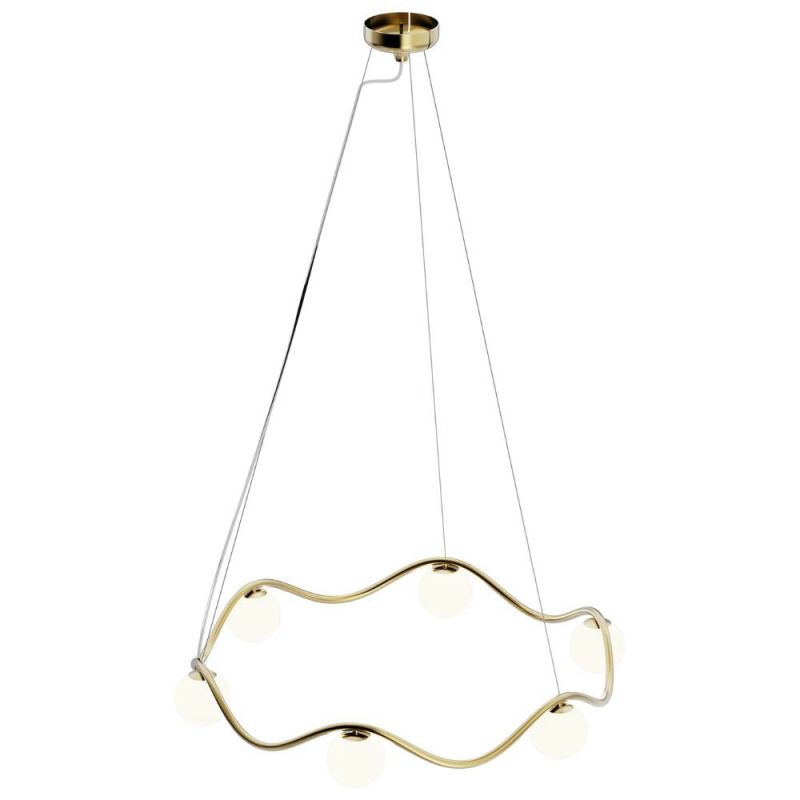 Wave-Pendelleuchte - Skulpturale Eleganz in Messing. Wave ist ein moderner Kronleuchter mit skulpturalem Ausdruck, der für zeitgenössische Räume mit Sinn für Ästhetik entworfen wurde. Die wellenförmige Form aus massivem Messing hängt elegant an dünnen Drähten und erzeugt ein leichtes, schwebendes Gefühl im Raum. Die organische Silhouette verleiht Bewegung und Ruhe zugleich und macht die Leuchte zu einem Blickfang über dem Esstisch, im Flur oder als Teil einer größeren Rauminstallation.