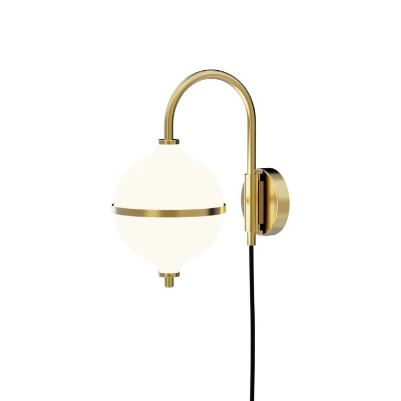 Elegante Globe-Wandleuchte. Tidlöse und anspruchsvolle Beleuchtung. Eine wunderschöne Kombination aus klassischer Eleganz und modernem Minimalismus. Die Wandleuchte verfügt über einen geschwungenen Arm in Messingoptik, der eine mattierte Opalglaskuppel trägt, die dezent von einem Metallband eingerahmt wird. Das Design verleiht jedem Raum Wärme, Ruhe und Eleganz und ist perfekt für das Wohnzimmer, das Schlafzimmer oder den Eingangsbereich.