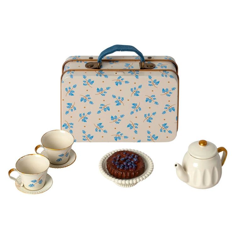 Dieses Teeservice passt perfekt in eine kleine Mäusepfote. Mit allem, was man für Tee, Kuchen und Service braucht, ist die Gemütlichkeit komplett. Das Set wird in einem wunderschön verzierten Metallgehäuse im Maileg-Design geliefert.