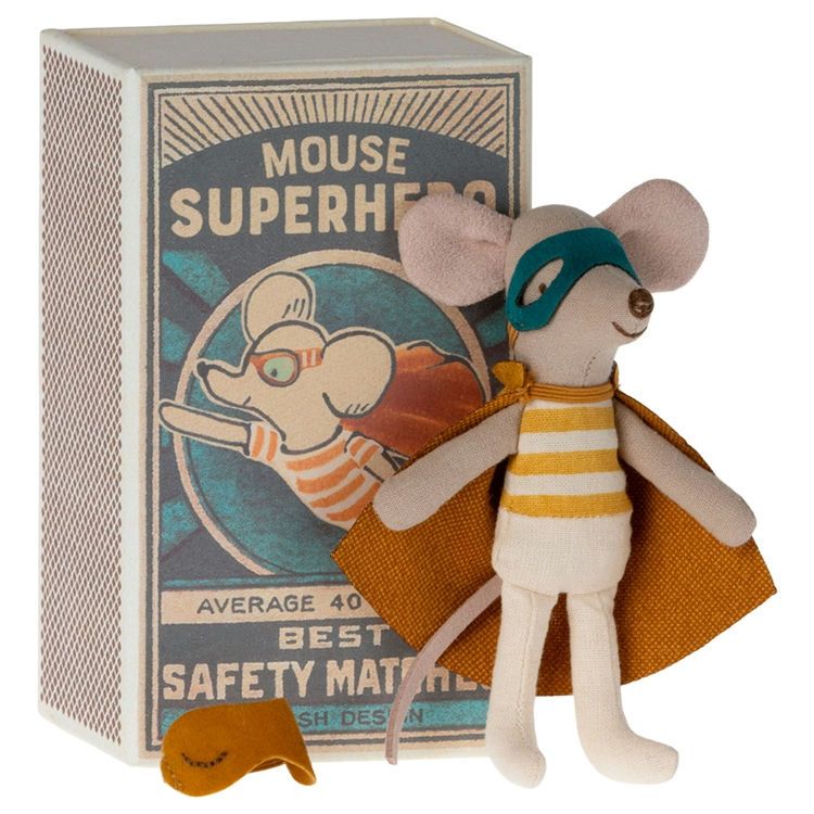 Maileg Superhelden Maus Kleiner Bruder in Streichholzschachtel
