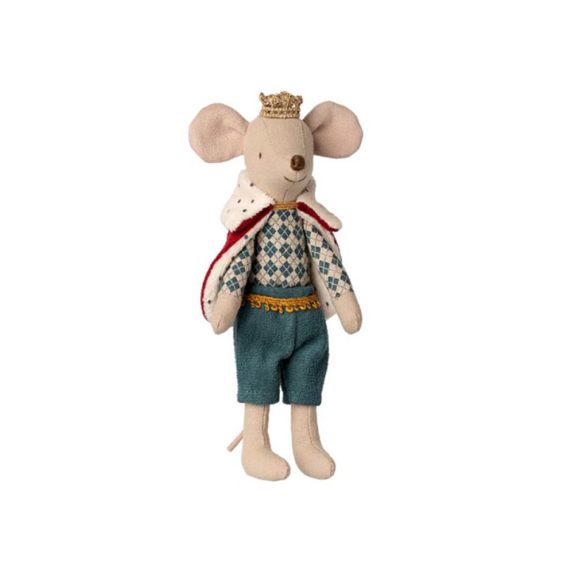 Die Königmaus in der Größe Vater ist bereit, in seinem Schloss Gastgeber zu sein. Er trägt einen Umhang und eine Krone und passt perfekt in den Festsaal.