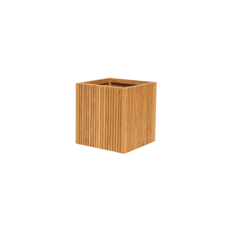 Pflanzgefäß im klassischen dänischen Design wird unmontiert geliefert und ist aus langen, schmalen Lamellen aus Teakholz gefertigt. Zusammengebaut dient es als stilvoller Übertopf für Pflanzen sowohl draußen als auch drinnen.