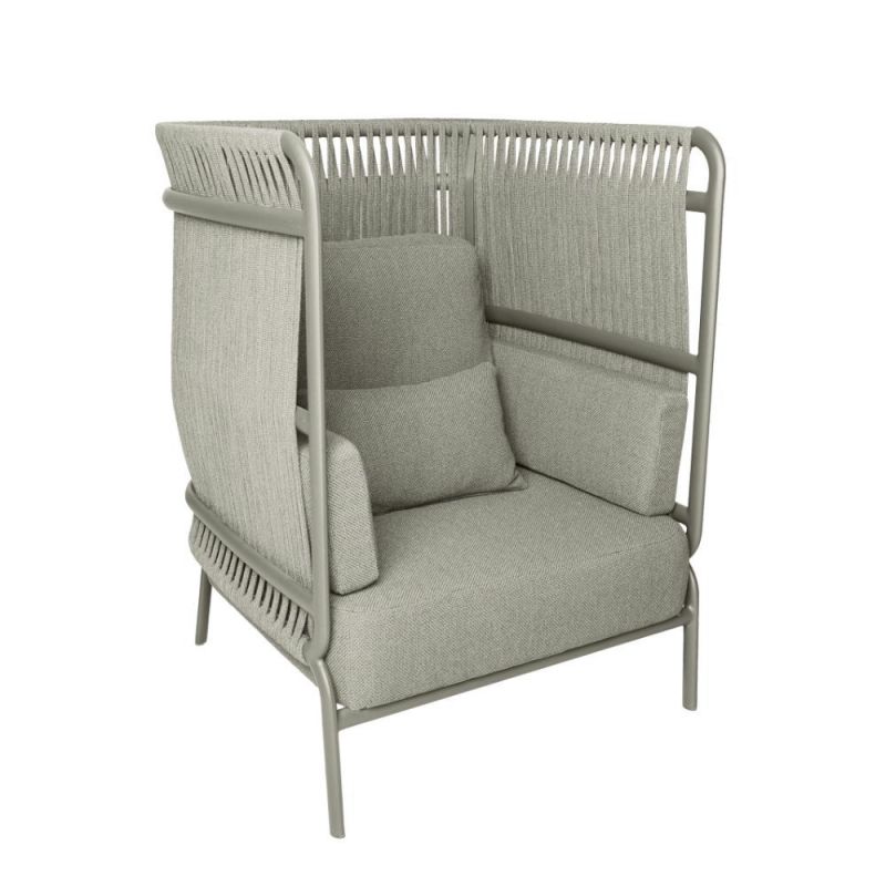 Mindo 106 High Back Loungesessel ist ikonisch und schafft einen gemütlichen, abgeschirmten Ort für Entspannung im Freien. Die hohe Rückenlehne bietet sowohl Privatsphäre als auch Schutz vor den Elementen, was ihn ideal für den ganzjährigen Einsatz macht und zu einer perfekten Ergänzung für deine Outdoor-Oase.