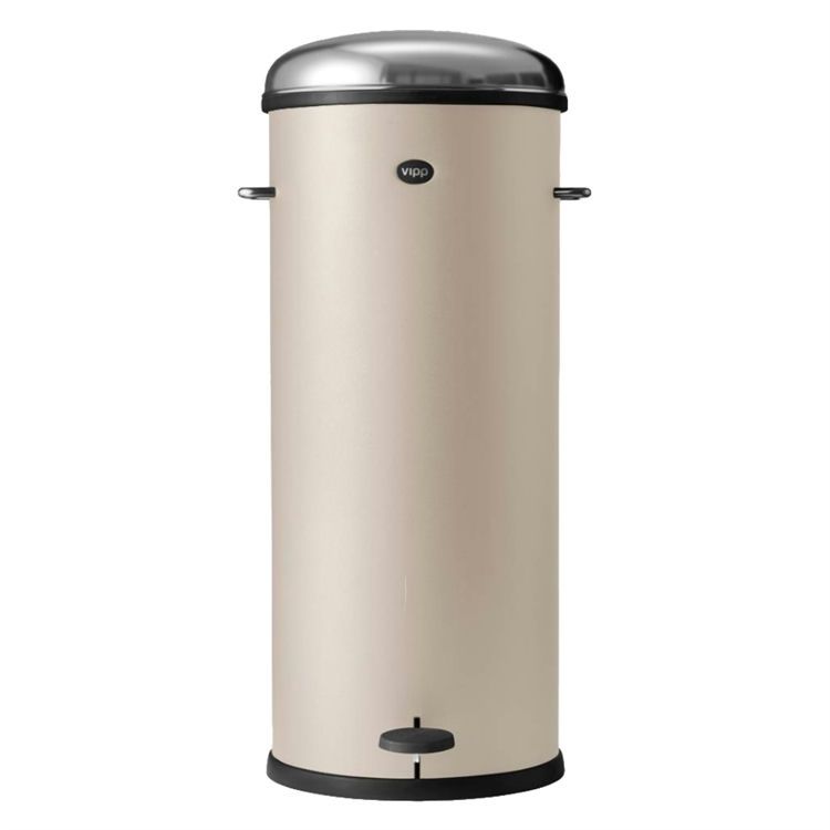 Der Vipp17-Treteimer ist ein 30-Liter-Abfalleimer, der größte der Vipp-Serie. Er verfügt über einen Dämpfungsmechanismus für ein geräuschloses Schließen des Deckels und einen Gummiring, der für einen dichten Verschluss sorgt. Der Eimerkorpus besteht aus pulverbeschichtetem Stahl oder Edelstahl und enthält einen herausnehmbaren Inneneimer aus verzinktem Stahl. Ein Gummiring an der Unterseite schützt empfindliche Oberflächen.