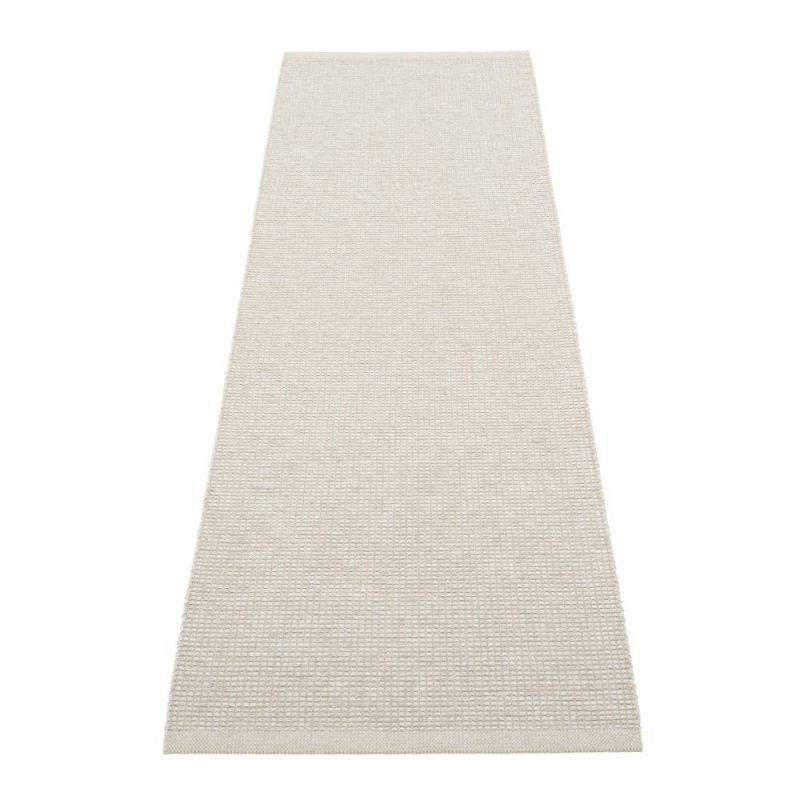 Durch die Verwendung einer innovativen Webtechnik, entwickelt von dem Meisterweber Kim Fröyen und der Designerin Lina Rickardsson, kombiniert EMM eine einzigartige Mischung aus europäischem Leinenkettgarn und PVC-Bändern. Dies führt zu kleinen, erhabenen Quadraten, die ein dynamisches und lebendiges Design schaffen. Der natürliche Glanz des Leinens wird durch die metallischen Nuancen hervorgehoben, die sowohl Muster als auch Textur betonen.