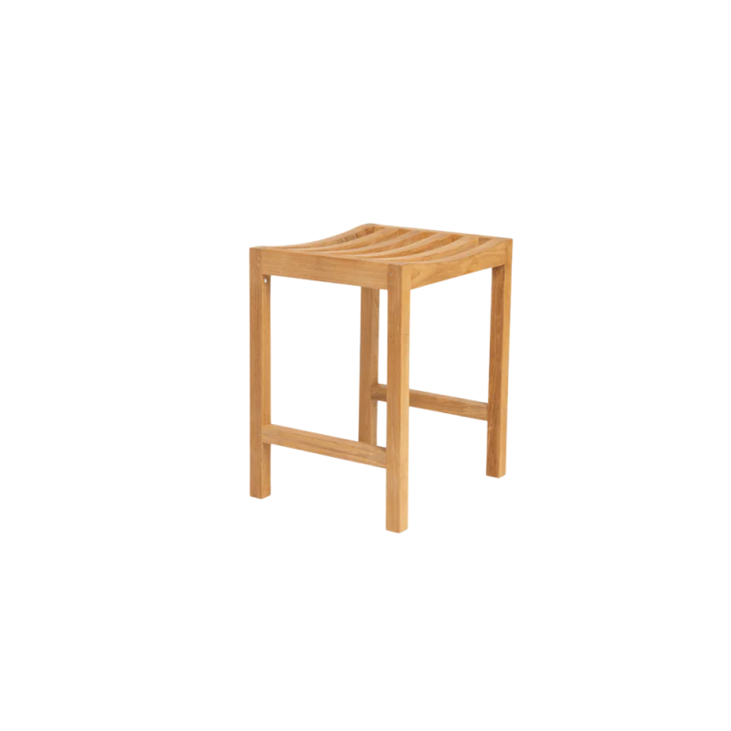 Komfortabler Arbeitshocker mit gebogener Sitzfläche aus langlebigem Teakholz.