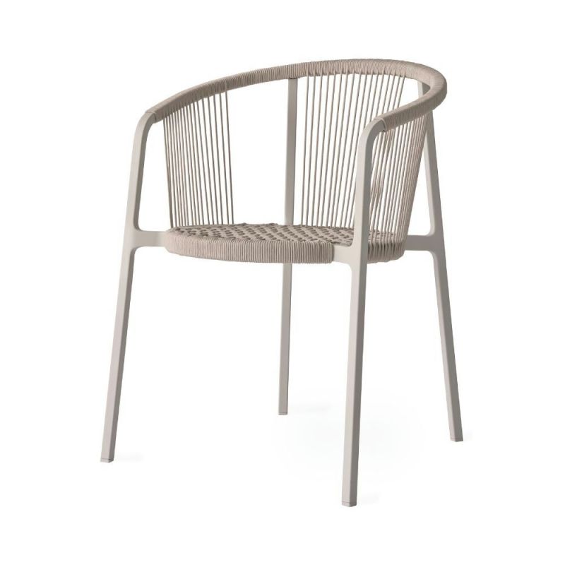 Der stapelbare Lagrasse-Stuhl verfügt über einen schlichten, pulverbeschichteten Aluminiumrahmen mit einer runden Rückenlehne, die gleichzeitig als Armlehne fungiert. Ein bequemes Kissen aus gewebtem Outdoor-Stoff rundet das Design ab. Perfekt für kleine Außenbereiche oder den flexiblen Einsatz im Garten: Die Lagrasse-Serie schafft gemütliche Sitzgelegenheiten unabhängig von der Größe des Raums.