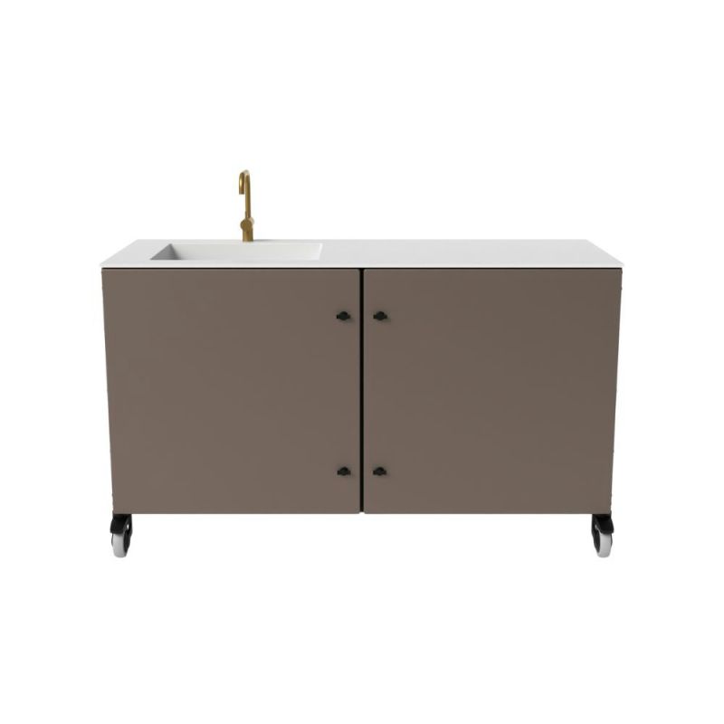 Norrvik-Außenküchen sind mit einem, zwei oder drei Schränken aus wetterbeständigen Materialien erhältlich und können das ganze Jahr über im Freien verwendet werden. Die Schränke verfügen über dichte Türen und verstellbare Einlegeböden (ausgenommen das Waschmodul). Wählen Sie aus sechs Farben und einer robusten, weißen Kerrock®-Tischplatte, die hitzebeständig, kratzfest und leicht zu reinigen ist. Alle Modelle sind fahrbar, kombinierbar und wartungsarm. Entworfen und hergestellt in Dänemark. Lieferzeit: 48 Wochen.