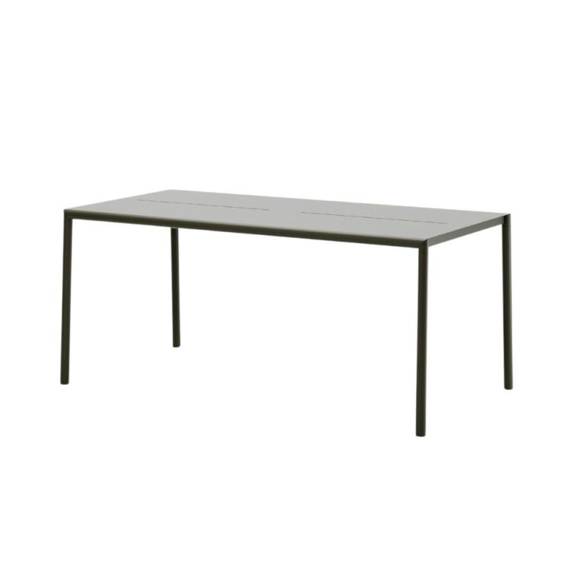 Mai-Serie. Outdoormöbel aus pulverbeschichtetem Stahl für Garten, Terrasse und Balkon. Die Serie besteht aus stapelbaren Stühlen mit und ohne Armlehnen sowie Tischen in zwei Größen, die alle aufeinander abgestimmt sind. Der monochrome Look ist schlicht und elegant, während die gebogene Stahlplatte und der robuste Rahmen sowohl Stabilität als auch Komfort gewährleisten. Ein diskreter Schlitz im Sitz sorgt für Wasserablauf und Leichtigkeit, ein Designmerkmal, das sich durch die gesamte Serie zieht und den Ausdruck zusammenhält.