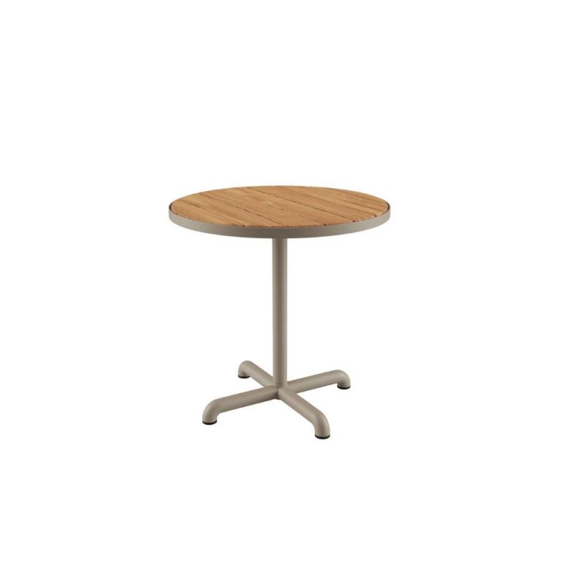 Der Kirra Café Table ist ein minimalistischer Cafétisch für den Außenbereich aus pulverbeschichtetem Aluminium und Teakholz. Das leichte, rostfreie Aluminium sorgt für lange Haltbarkeit, während der warme Glanz und die natürliche Patina des Teakholzes mit der Zeit Charakter und Charme verleihen. Perfekt für kleinere Außenbereiche wie den Balkon, die Terrasse oder eine sonnige Ecke im Garten, wo Kaffee genossen und Gespräche geführt werden können.