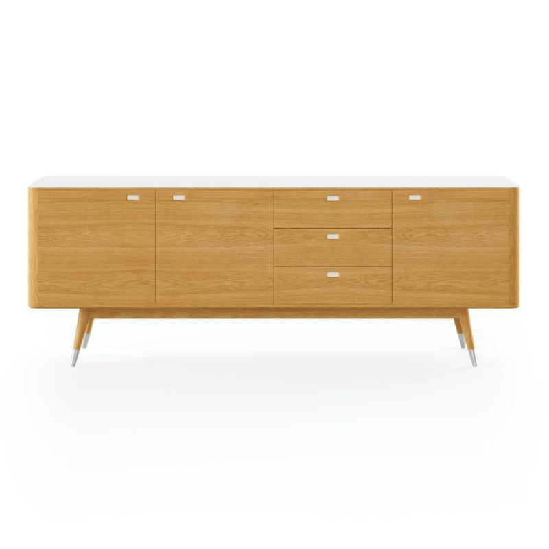 Die Anrichte AK 2630-2660 wirkt weich und einfach mit ihren organischen Formen und der Oberfläche aus dem exklusiven Material Corian.